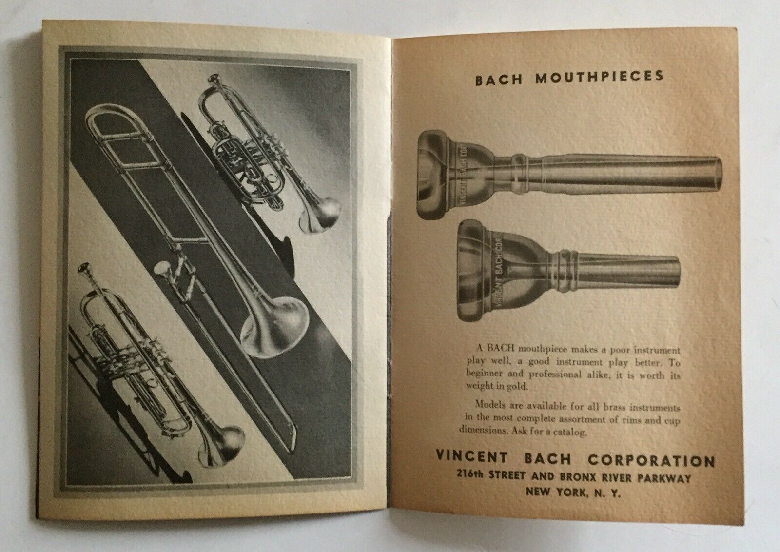Vincent Bach was also an innovator when it came to promoting his instruments with musicians from the beginning of his mouthpiece to the later years of his company. Vincent and his company often worked to promote famous musicians at the time through postcards and promotional brochure promoting both the musicians and the “highest quality” BACH brass instruments.