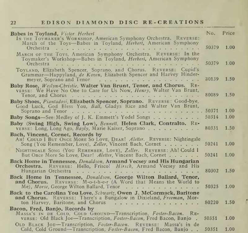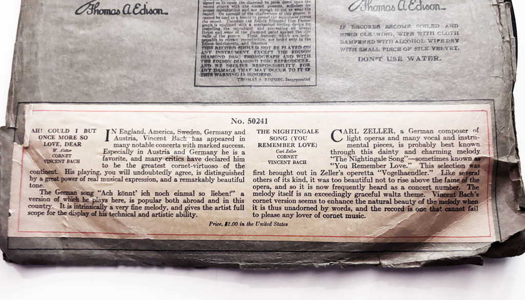 Vincent Bach, Edison Recording Artist