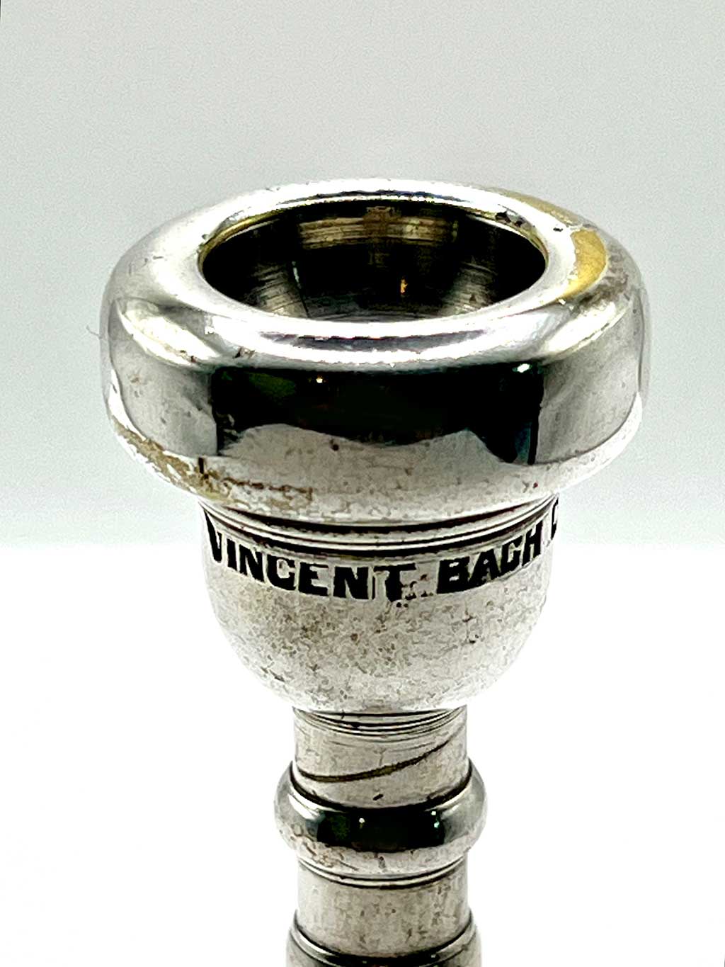 This Bach mouthpiece is likely a Vincent Bach personal trumpet mouthpiece, and its stamped V. B. is similar to other Vincent Bach personal mouthpieces.