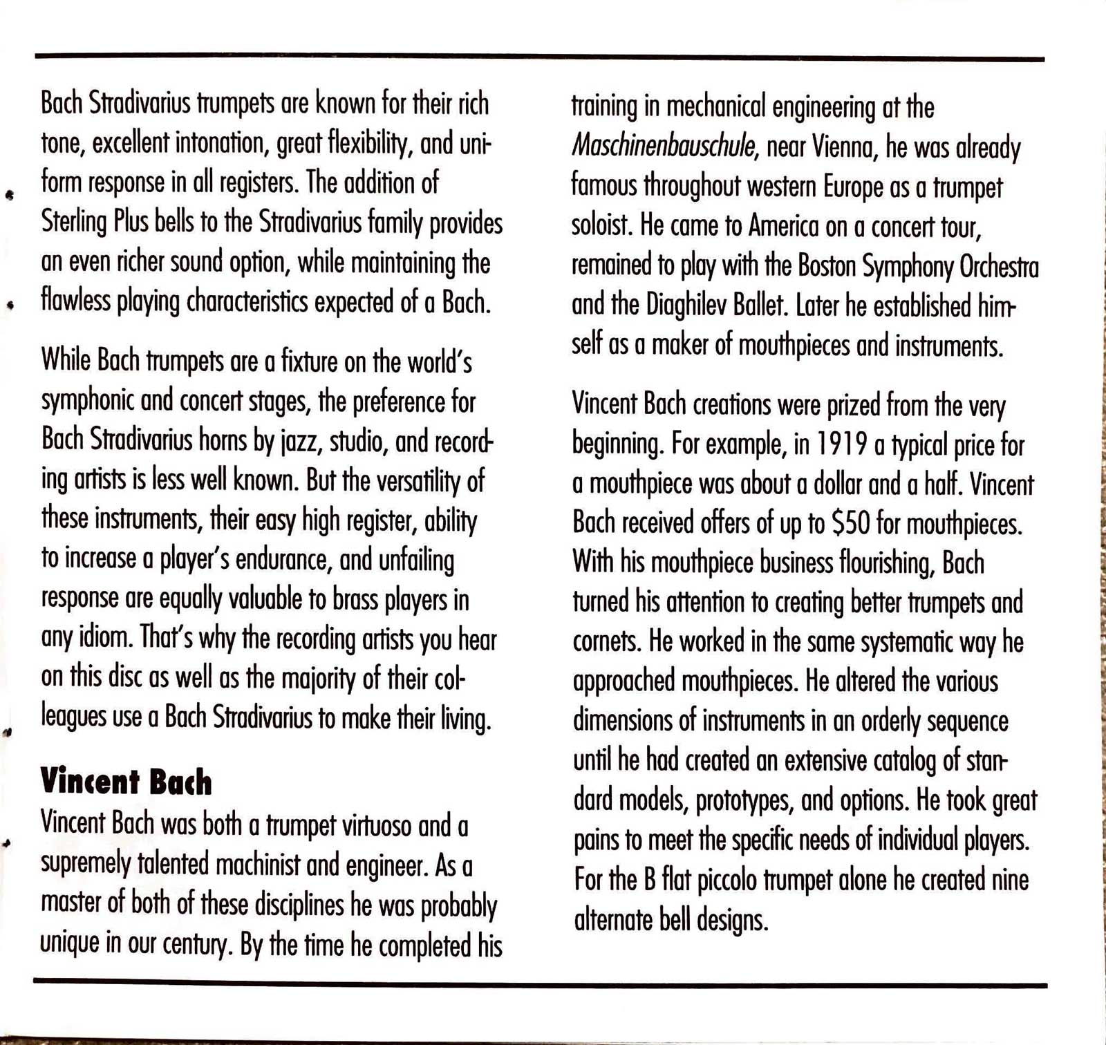 Sterling silver bells were introduced in the early 1990s on Bach Stradivarius trumpets and trombones for players who wanted a “richness” to their sound. Below are examples of Bach “Sterling Silver” (~92 to 93% Silver) and Bach “Sterling Plus” (99% Silver) bells, along with the corresponding advertisements for these unique bells.