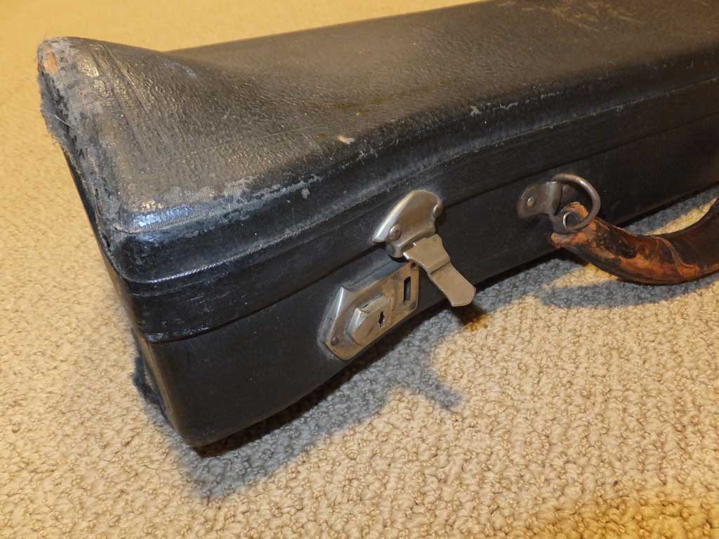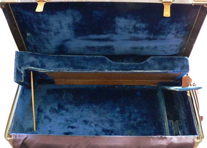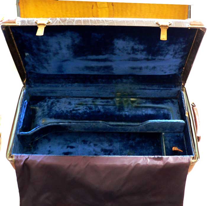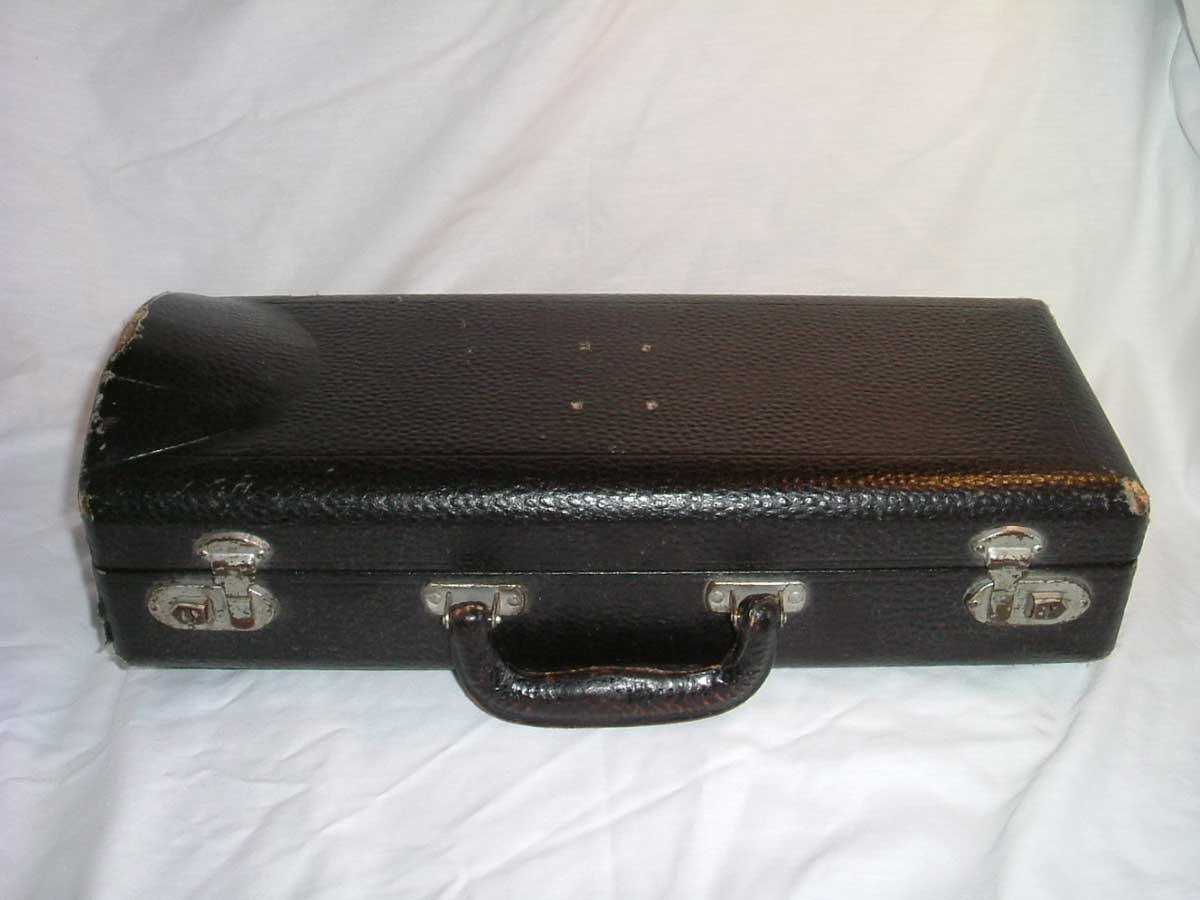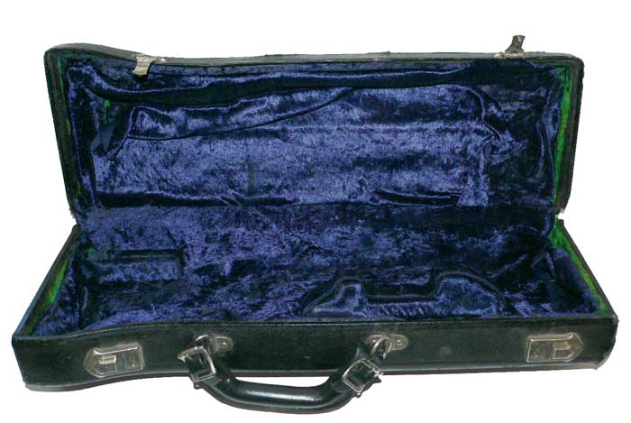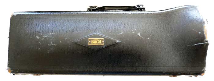 Curiously, this case did not have the Bach Emblem on the outside of the case. No nail holes are present, so it would not have been applied. This was also when Vincent Bach Corporation was transitioning away from the Bach SunShine logo.