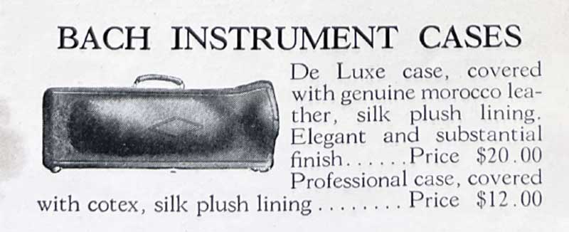 It is very important to note that at the time (1928), the new Bach trumpet cost approximately $125. The cost of the cases would have been an expensive option for a trumpet player at that time.