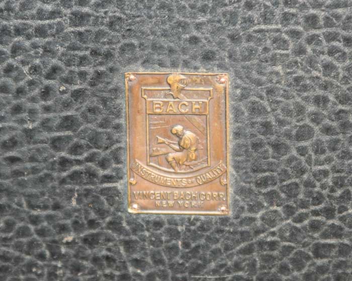 In approximately 1930, Vincent Bach Corporation switched to using a stamped brass Bach Artisan shield on the outside of Vincent Bach’s trumpet and trombone cases. The same stamped shield was also attached in the inner lid of Bach cases.