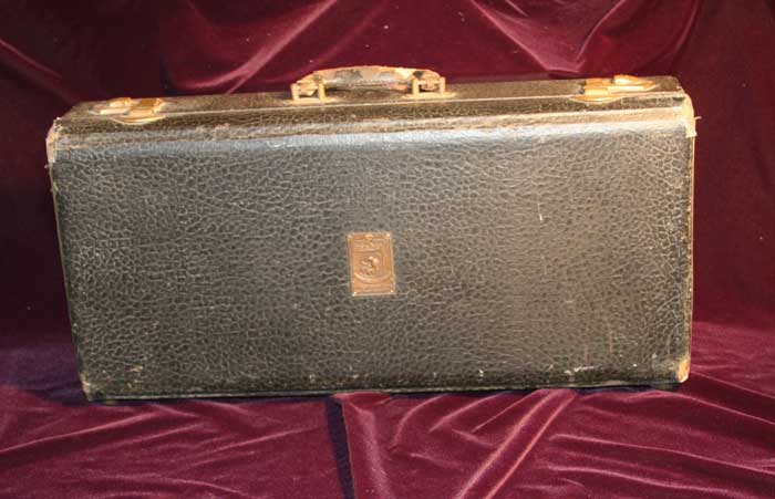 The patent number (US1717930) on the latch was issued in June 1929 to SOSY, Inc. of New York City. This would date Bach’s trumpet case example from 1929 to the early 1930s. Bach transitioned to a completely black case in the early 1930s, so this case would be close to the end of offering this case option.