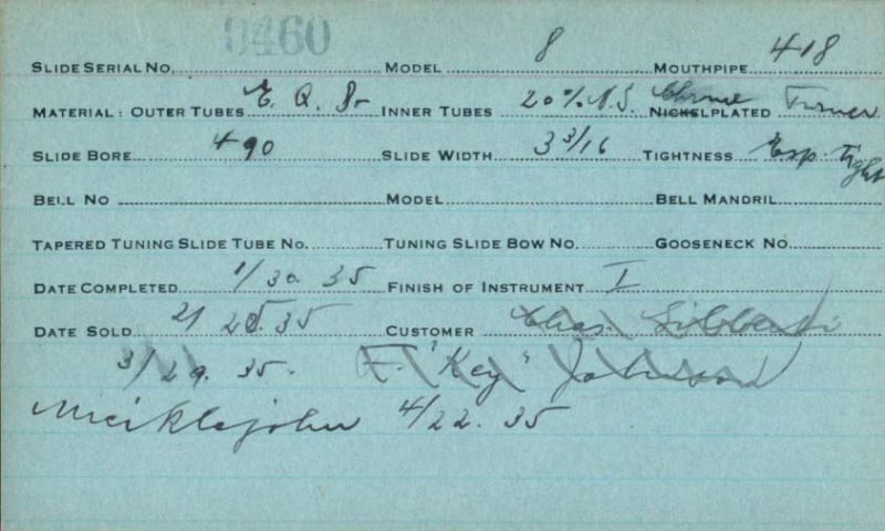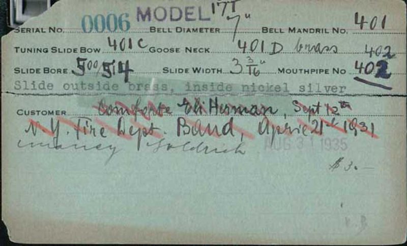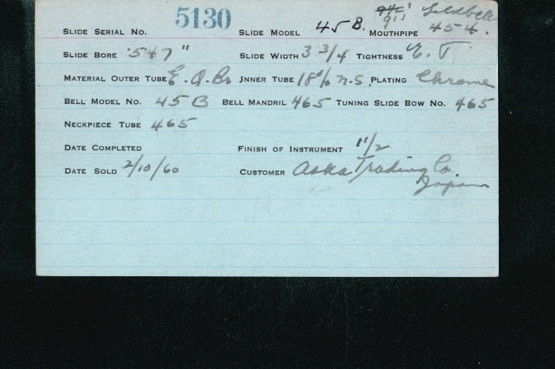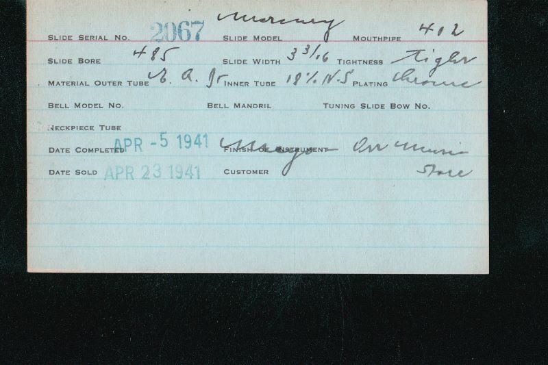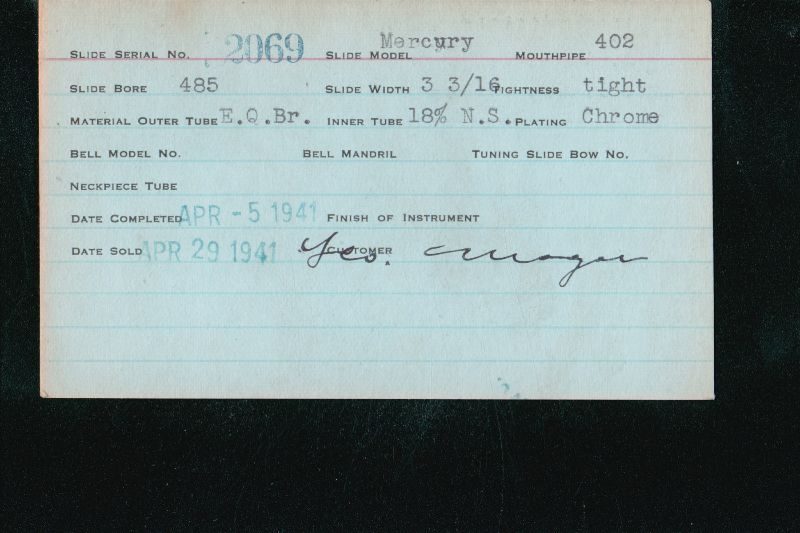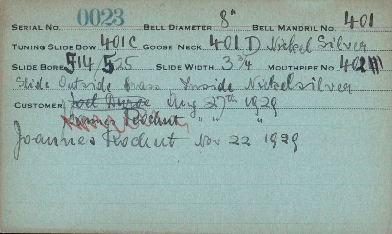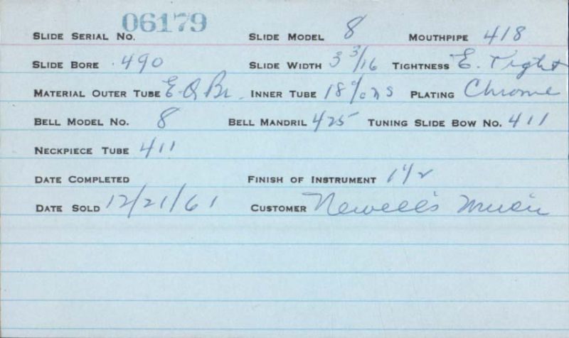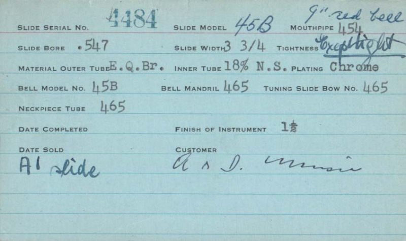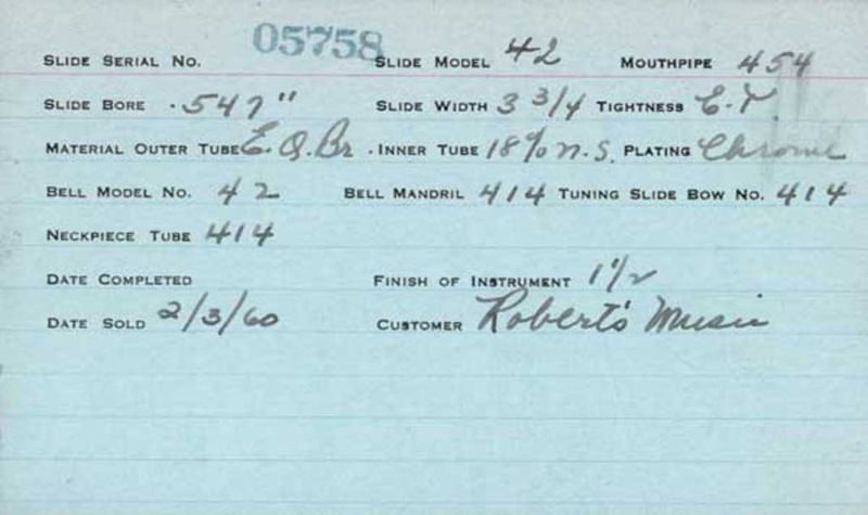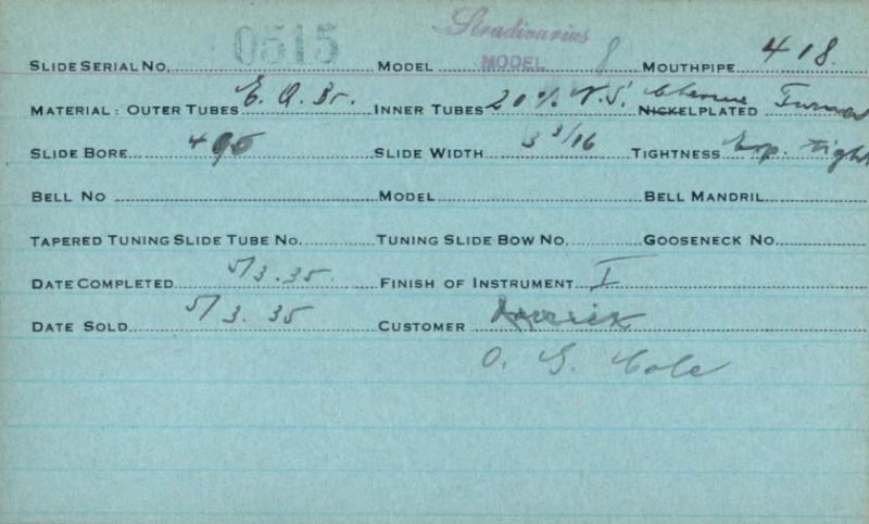 | Stradivarius | 460 | 8 | 418 | 0.490″ | 1935 | 🎺 | Sold: 3/29/1935 | TromboneForum | |||