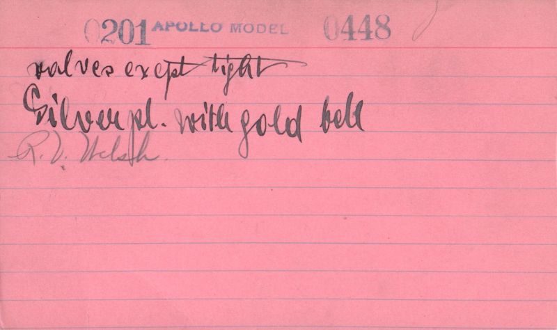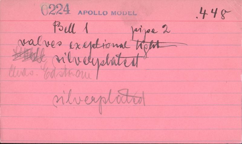 | Apollo | 201 | B | S | Silver | 1925 | 🎺 | H.N White (King) valve block | Robb Stewart | 91006 | ||
