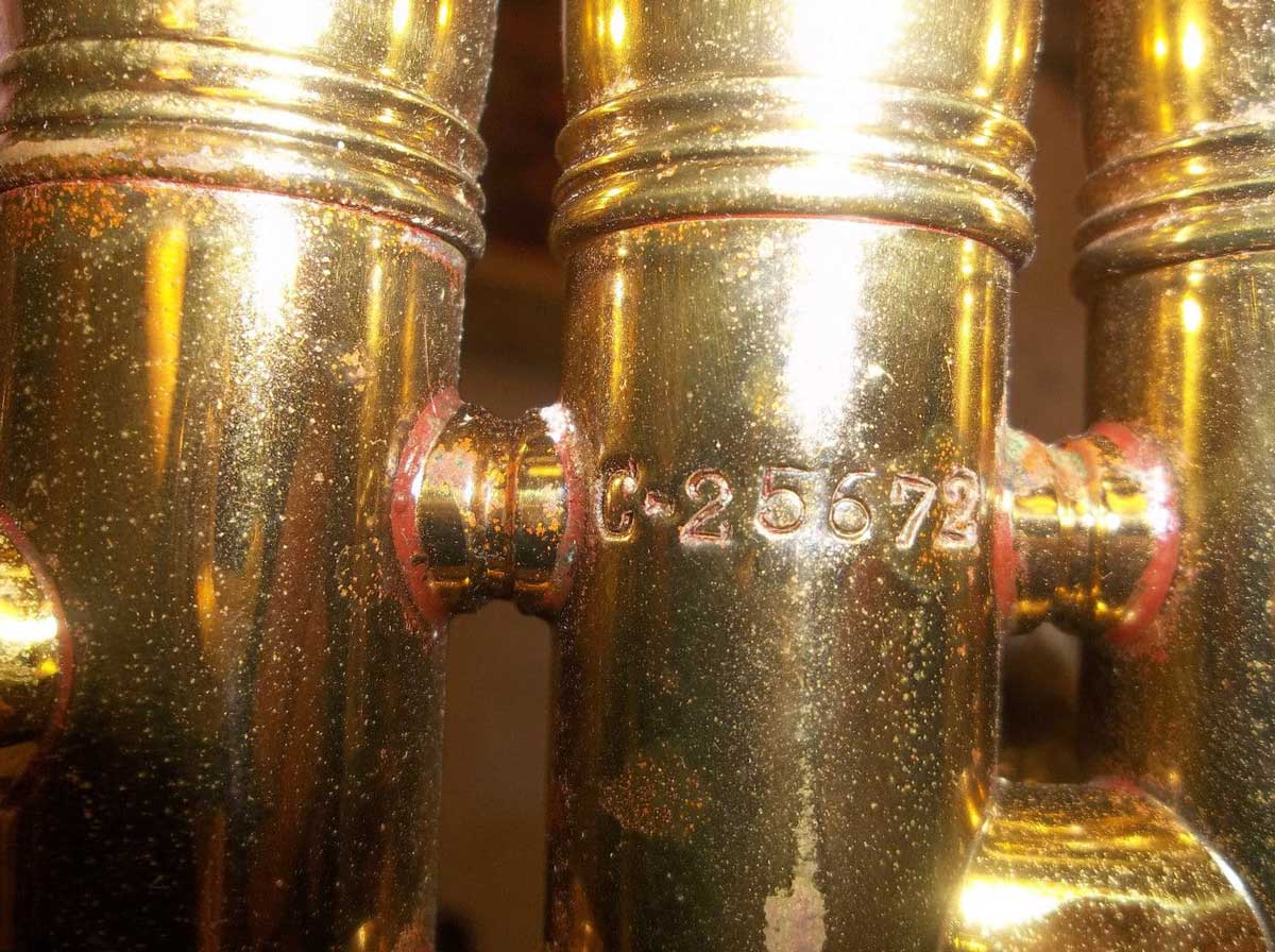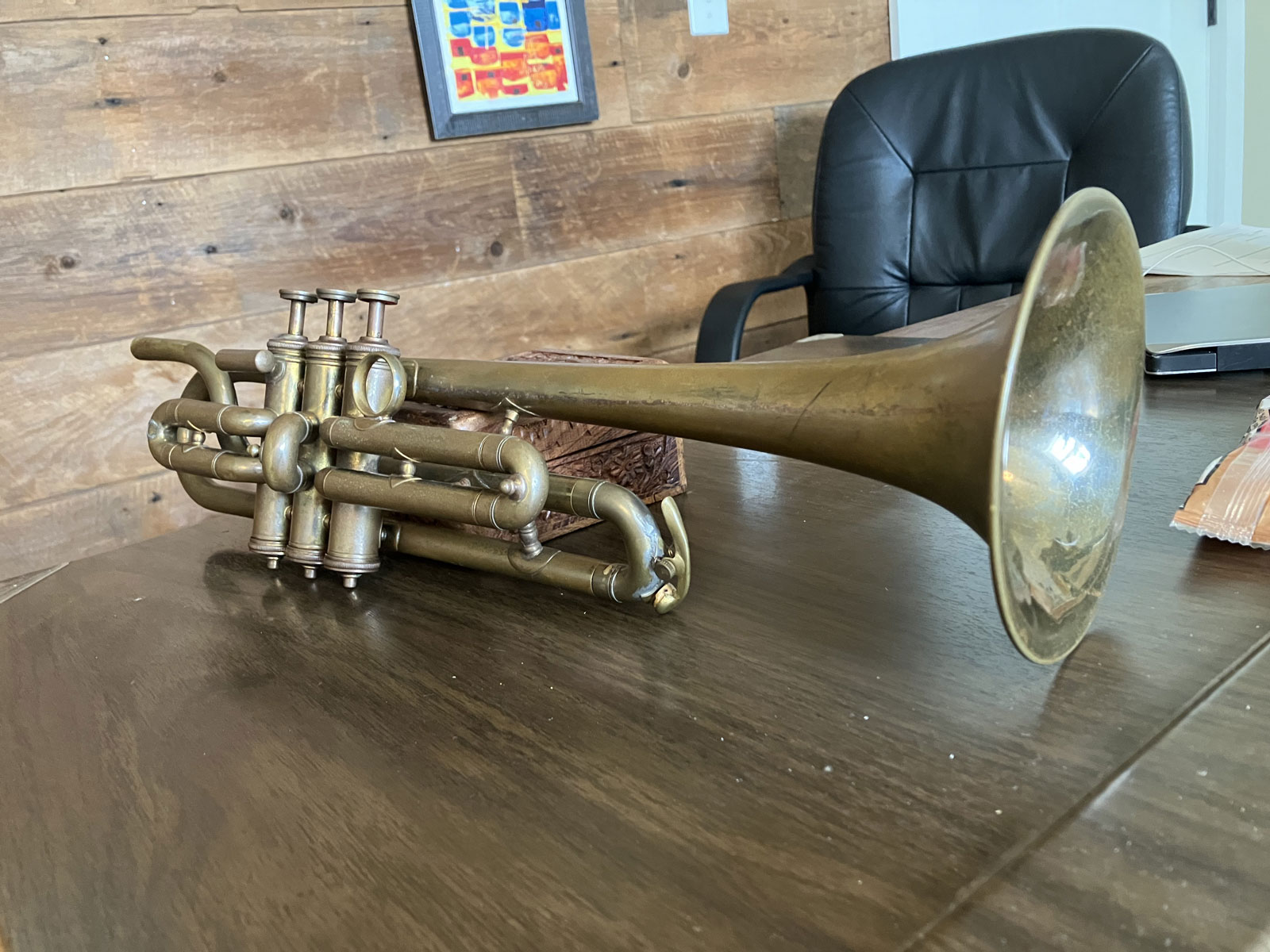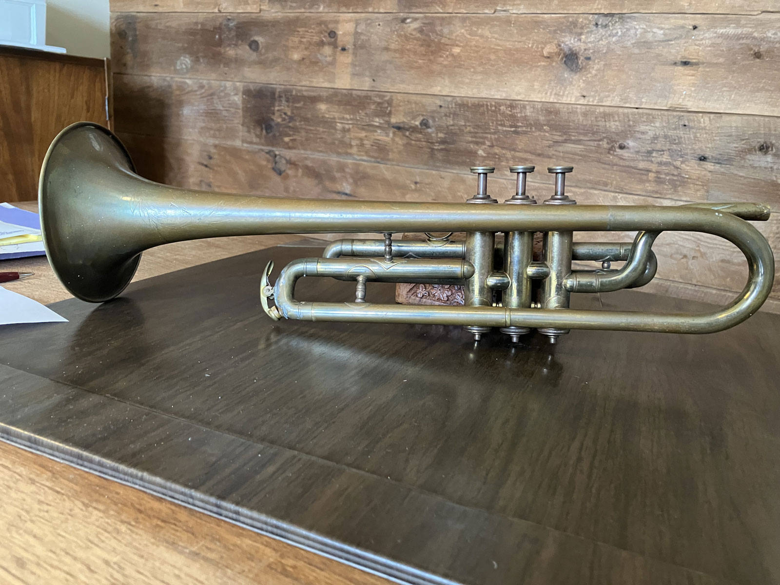 ” These trumpets were made by the Cleveland instrument company, the same as their 1920s pro model. As the serial number starts with a C, this was produced when HN White (now King) first bought the company and designated their serial numbers made there with a “C.”