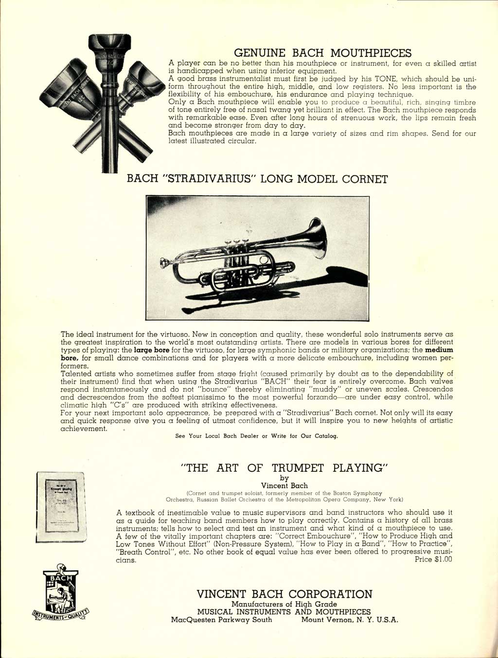 Vincent Bach’s publication of Hungarian Melodies was his most famous musical arrangement for Cornet soloists and accompanists (piano, large orchestra, or large band) and was very popular with audiences when released.