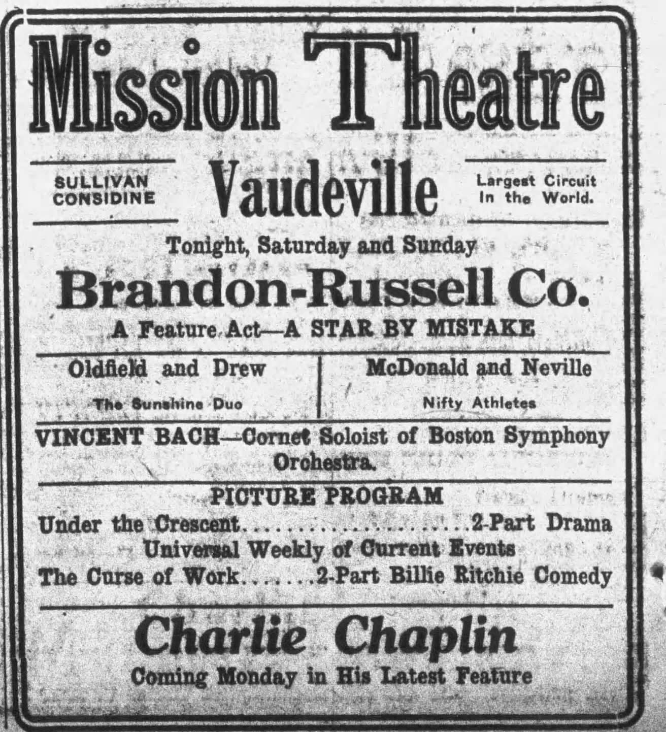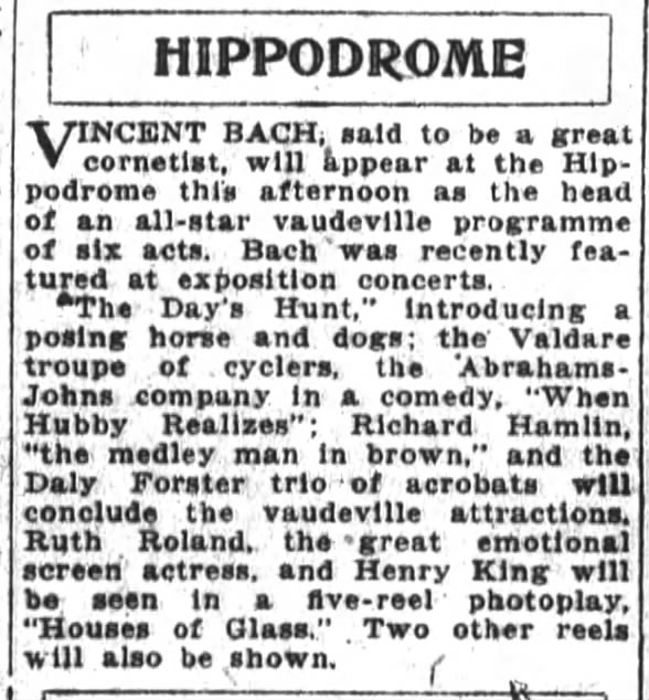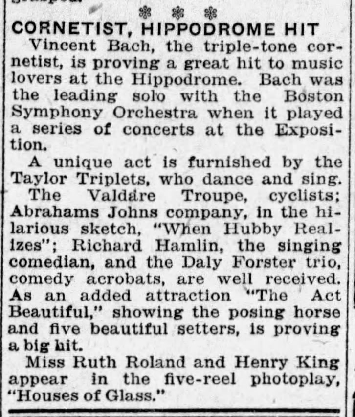 Vincent performed for a week at the Hippodrome in downtown San Francisco for a week engagement, after his tour with the Boston Symphony Orchestra at the World’s Fair. Below are some of the press clippings of Vincent’s performances.